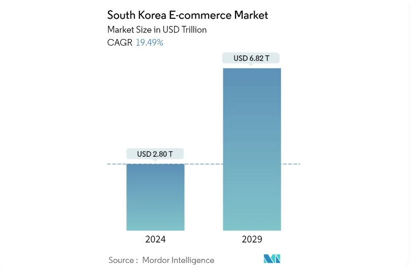 韩国,这个以三星为代表的本土品牌占据绝对优势的市场,对于外来品牌来说,无疑是一个巨大的挑战。但挑战与机遇并存。随着韩国年轻消费者对手机功能和品质要求的不断提高,以及跨境电商的快速发展,韩国市场逐渐展现出其巨大的潜力和无限的“掘金”前途。据Mordor Intelligence报告显示,韩国电子商务市场规模预计到2024年将达到2.80万亿美元,预计到2029年将达到6.82万亿美元,在预测期内(2024-2029年)复合年增长率为19.49%。 图源:Mordor Intelligence另据Statista的统计数据,韩国的电商渗透率居于高位,网民数量占据总人口92%,高达4735万人。其中,25-34岁、35-44岁、45—54岁、55-64岁年龄段的用户占比均在20%左右,网购年龄呈全民化趋势。小米,作为全球手机市场排名第三的手机制造商,自然不甘错过这片千亿级蓝海市场。于是,自2021年开始小米不断加大对韩国市场的投入,通过开设线下体验店、入驻Coupang等方式,逐步打入韩国市场。