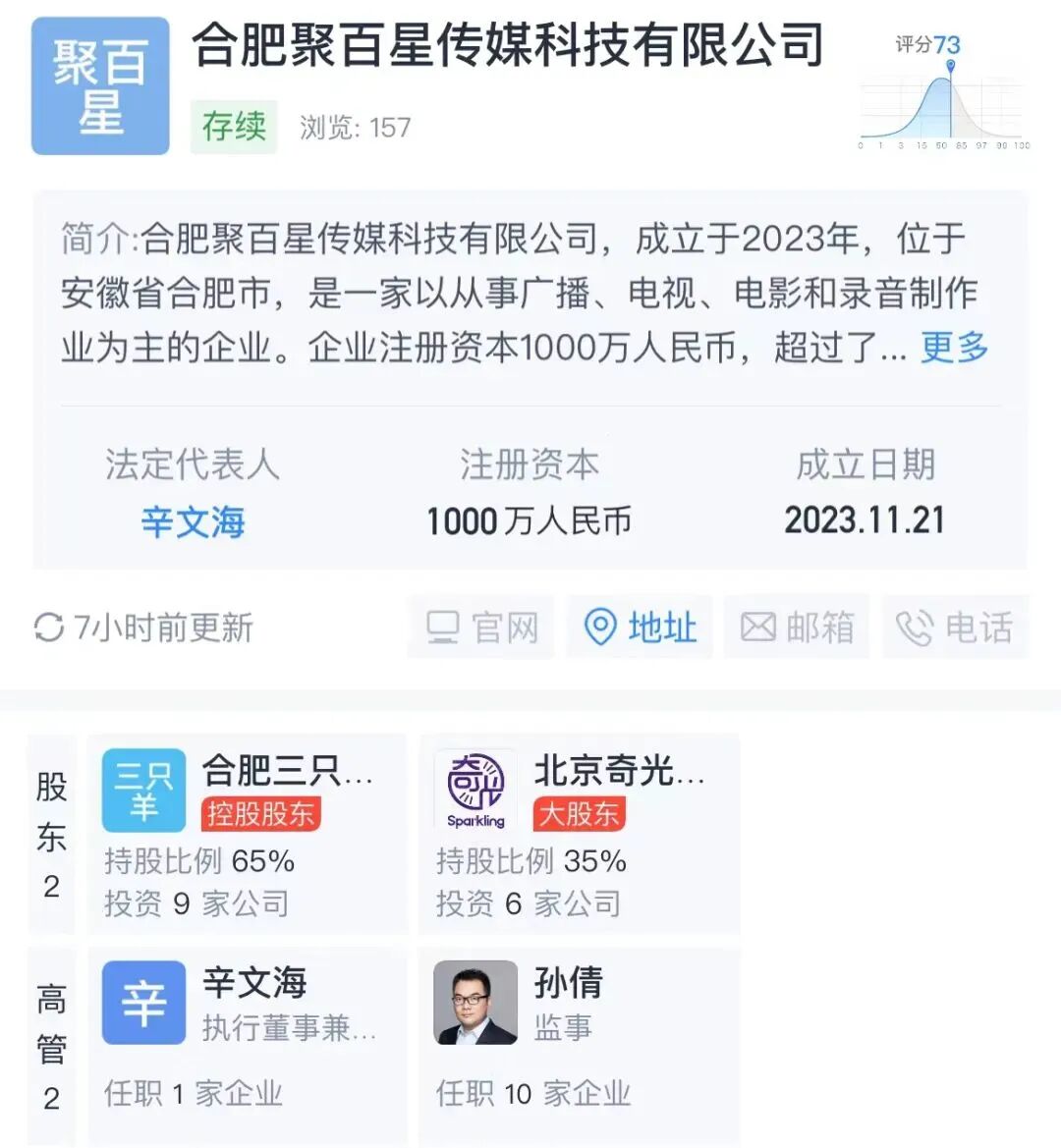 近日,三只羊网络的最新一部短剧《替嫁新娘是大佬》正式开拍,于合肥富茂大饭店启动开机仪式。通过现场人员透露的海报可以看到,演员阵容中有多位三只羊旗下的艺人,其中三只羊小七(七老板)更是小杨哥的徒弟之一。其出品方为“合肥三花影视传媒有限公司”,虽然并非小杨哥直接控股,但通过天眼查可知其地址位于三只羊集团的大楼内,说明其暗含联系。
